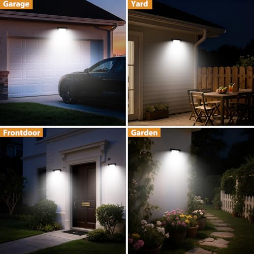 【Wide Range of Applications】Boasting reliable detection capabilities with a range of up to 5 metres and a wide 120° angle, this led outdoor lights offers adjustable triggering duration from 8 seconds to 12 minutes. It is an ideal choice for outdoor use in spaces such as gardens, garages, doorways, hallways, yards, docks, fences, patios, offering added convenience and safety to your daily life