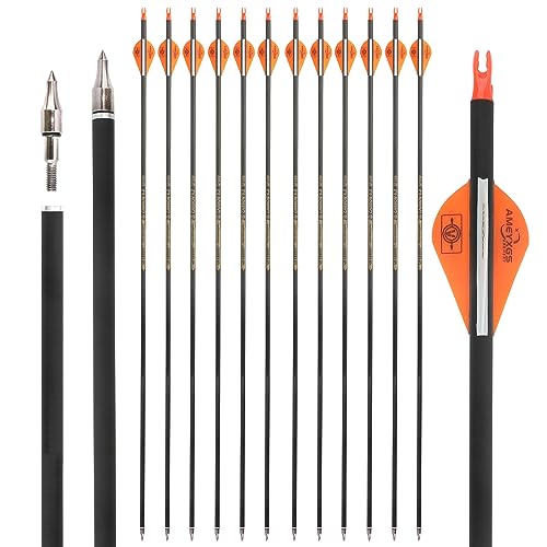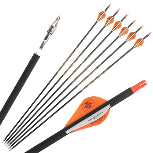 32″ Archery Pure Carbon Arrows 300 350 400 500 600 Spine Hunting Arrows for Recurve Compound Bow Outdoor Hunting Target Shooting Archery Training (6/12pcs)