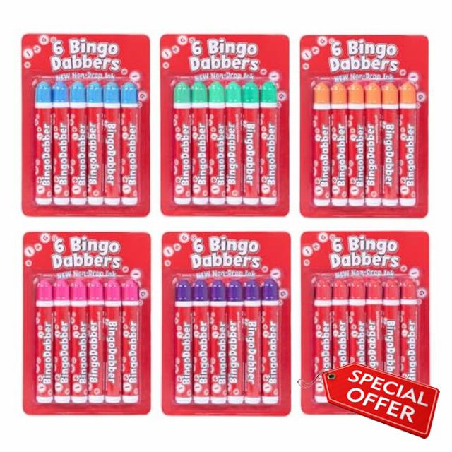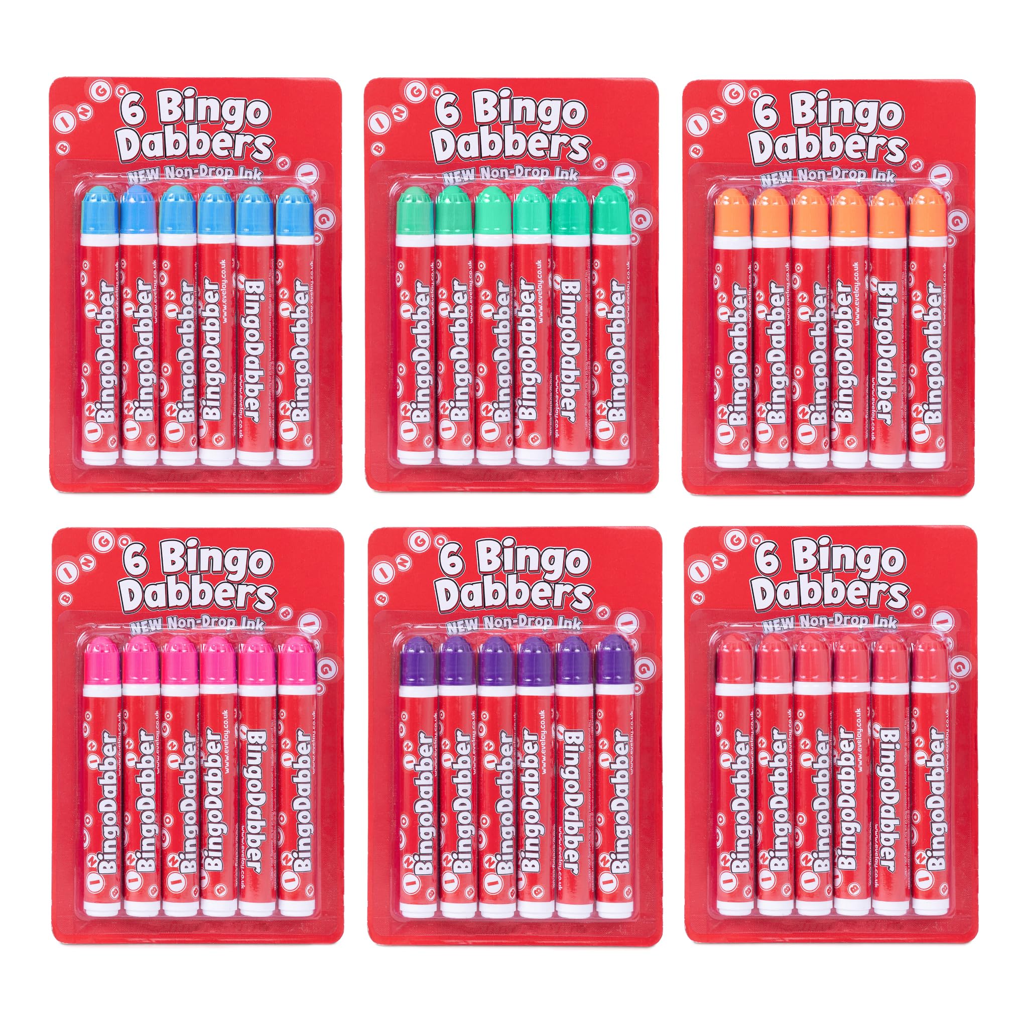 Bring excitement and colour to every game with this bumper pack of 36 Bingo Dabbers from Evelay Ltd. Each set includes 6 bold colours — Red, Blue, Green, Orange, Purple, and Pink, with 6 of each, making it perfect for clubs, community events, fundraisers, or family bingo nights.