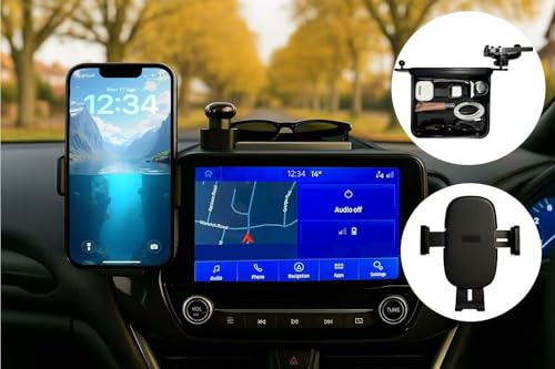 360° Adjustable Car Phone Holder for Ford Puma 2019–2024, Left/Right Flexible Position for RHD & LHD, Custom-Fit Dashboard Mount with Non-Slip Storage Tray, Safe Clear View – Matt Black