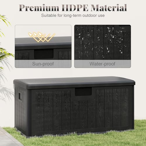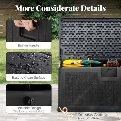 - Great Durability: Constructed with robust waterproof HDPE material and reinforced with metal pipes, the outdoor storage box promises longevity and resilience. Moreover, the lockable lid (lock is not included) adds an extra layer of security to keep your belongings safe.