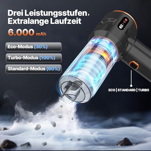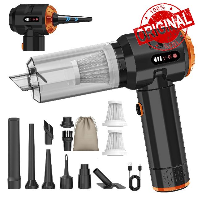 【220000 rpm 3-speed electric dust blower】 the integrated electric dust blower compressed air spray with 220000 rpm and 3-speed control: level 1: gentle cleaning of computer keyboards level 2: removing pet hair on sofas level 3: high-pressure cleaning of car floor mats