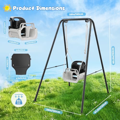 【Safe & Sturdy Construction】Boasting a rock-solid triangular frame, premium detachable seat, high-strength ropes, and non-slip rubber feet, this baby swing delivers unbeatable stability and durability. Reinforced with metal carabiners and secure bracket fixings, it ensures worry-free swinging for both you and your little one.
