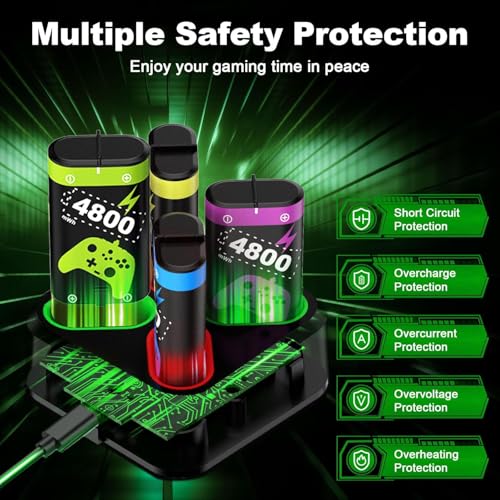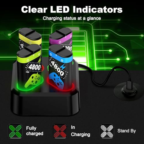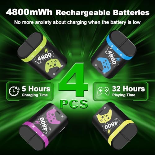 4800mWh Rechargeable Battery Packs for Xbox Series X|S/One, 4 X 4800mWh Xbox Controller Battery Packs, Rechargeable Batteries with Charging Dock for One/S/X/Elite