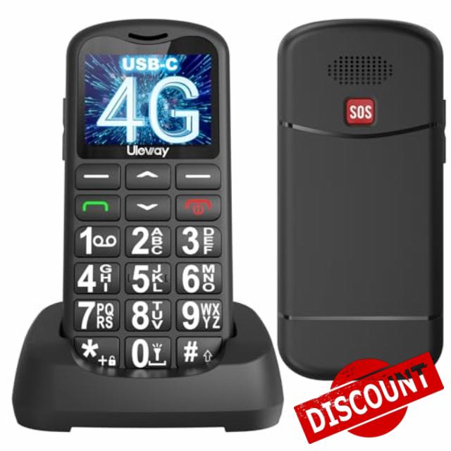 4G Senior Mobile Phone Without contract with large buttons and charging station