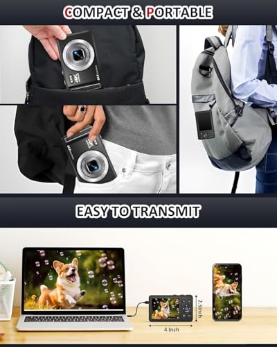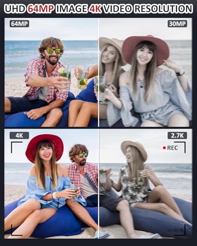 【4k & 64MP Digital Camera】: The compact camera has 4K video resolution and 64MP image resolution, which greatly improves image clarity, helping you capture and record the most exciting memorable moments with high-quality images or videos. One second to press the shutter, it's easy for starters and kids. We also have provided instructions so that children can better discover other features.