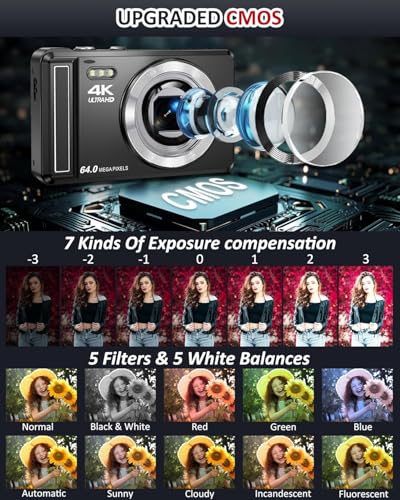 4K Digital Camera, 2.8 Inch 64MP UHD Compact Camera