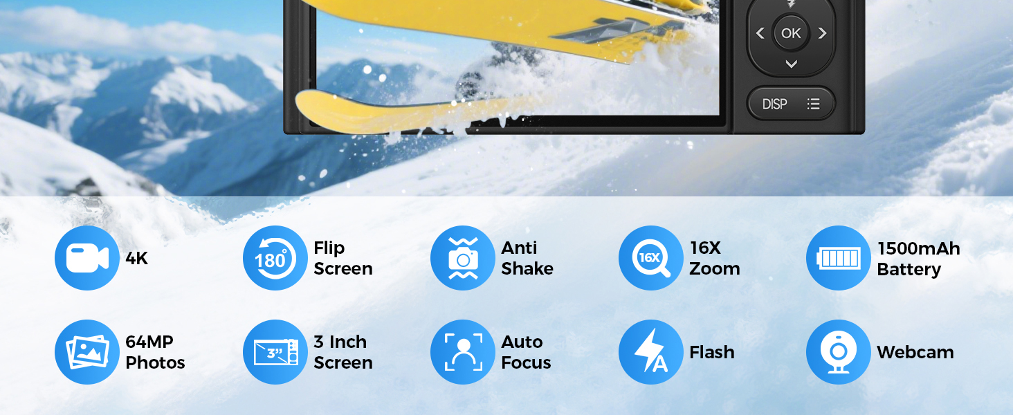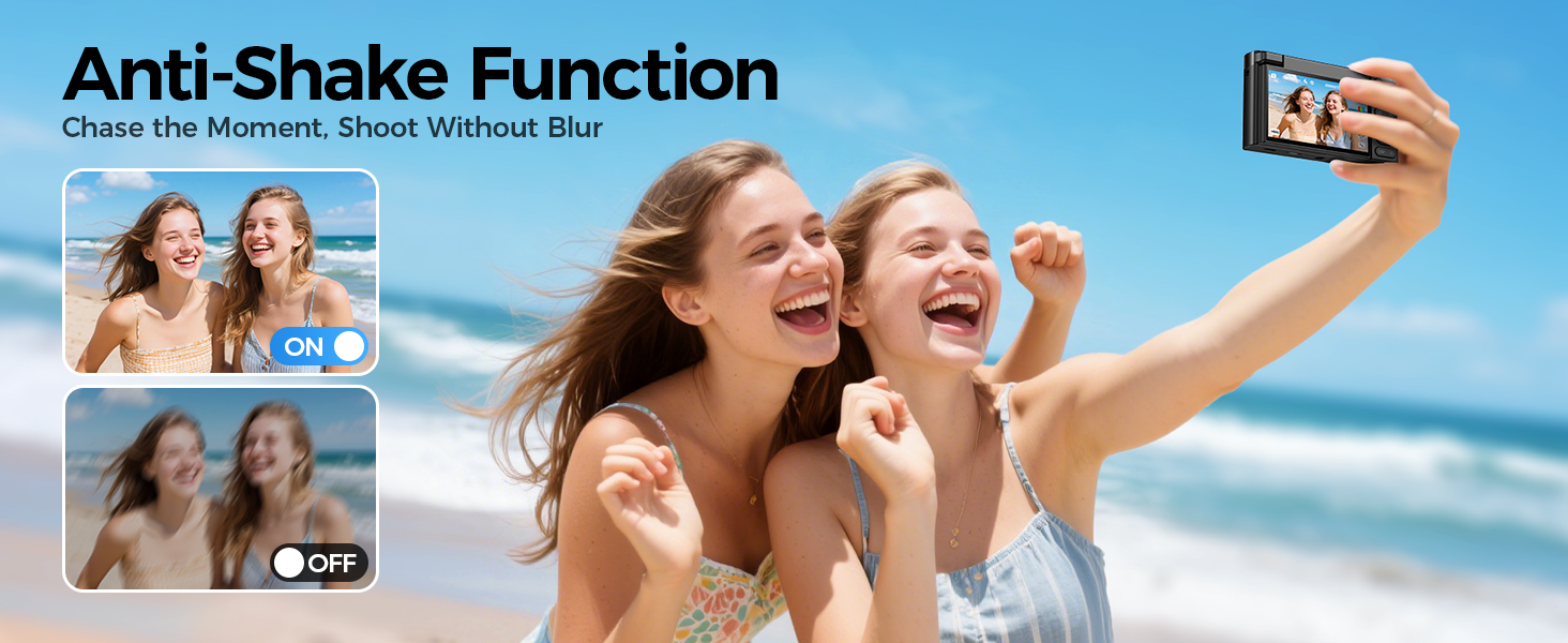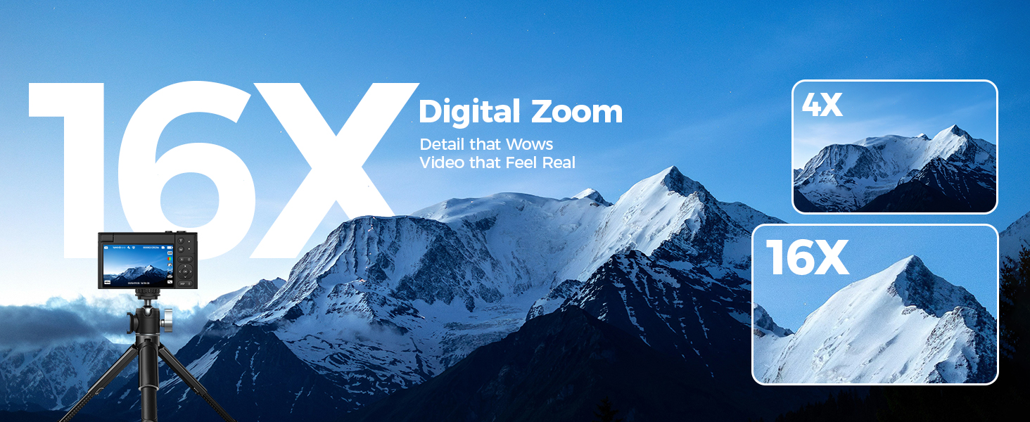 【16x Zoom & Autofocus AntiShake】This point-and-shoot digital camera features an advanced autofocus system that makes it easy to focus with a half-press of the shutter release button. It's easy to get clear, sharp images, and the 16x digital zoom ensures crisp, clear photos that bring every moment to life, whether you're shooting close-ups or distant landscapes. These features make it easy to capture life's fleeting moments.