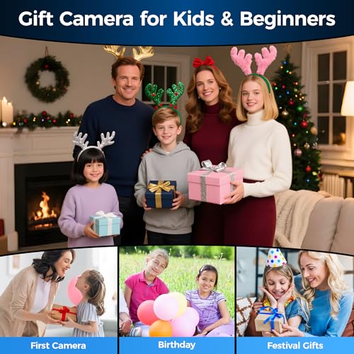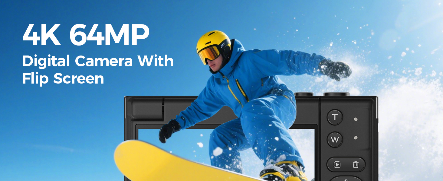 【4K 64MP Digital Camera with Flip Screen】This compact black digital camera shoots ultra-sharp 4K video and crisp 64-megapixel photos, and its 180° flip screen makes it perfect for video recording, selfies, and shooting on the go. Ideal for teens shooting vlogs, young professionals recording their daily routines, and enthusiasts practicing their skills. It's also easy for novices to get started.