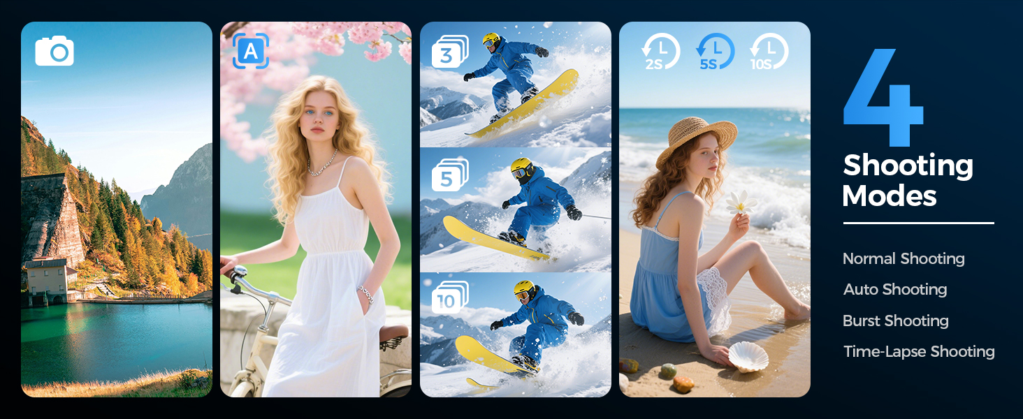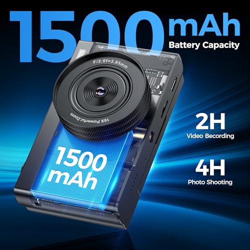 【Portable & Multi-Functional Design】The low-profile black exterior and pocket-sized design can be easily tucked into a bag or pocket, and the alloy material is resistant to wear and tear, ensuring that it still performs consistently over a long period of time. It also has creative functions such as slow motion, loop video and time-lapse photography. Whether you're taking a group photo or a solo shot, the automatic photo, continuous shooting and timer functions all come in handy. 16 built-in filters add ambience and personality, making each photo unique.