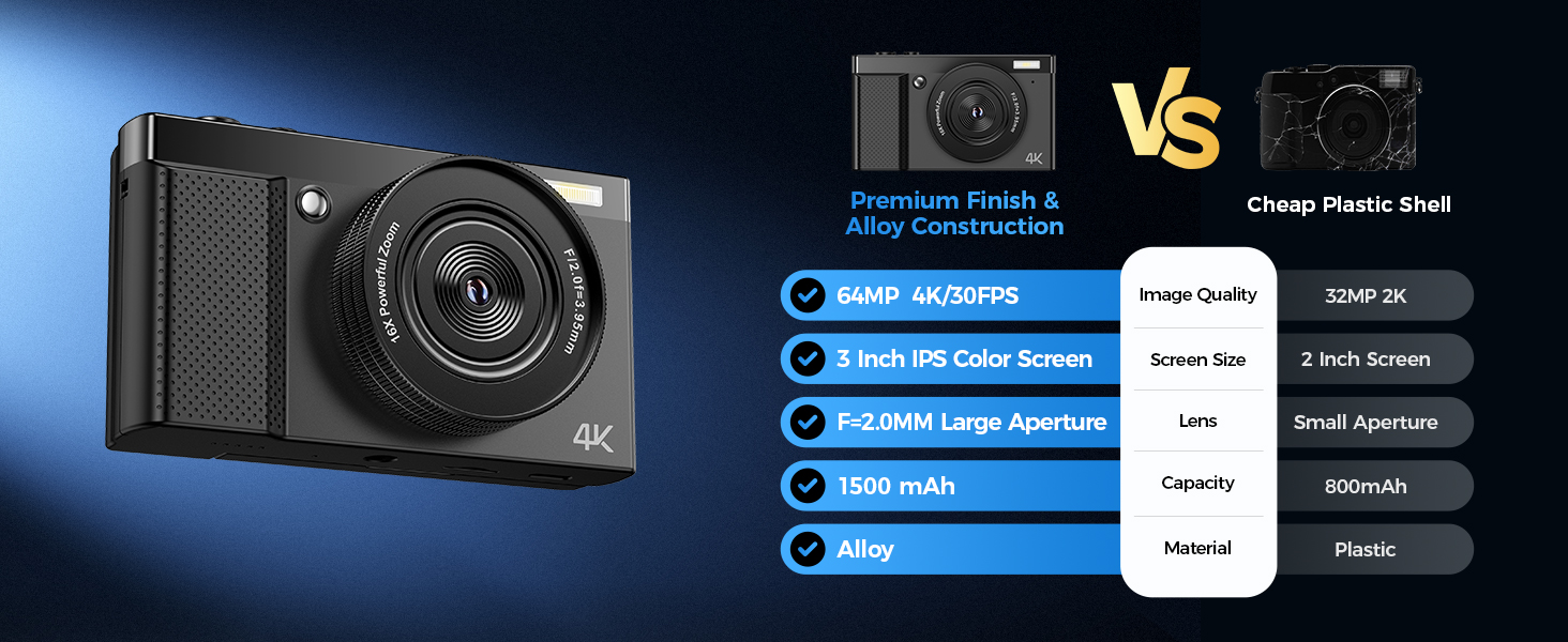 4K Digital Camera for Photography Vlogging: 64MP Cam