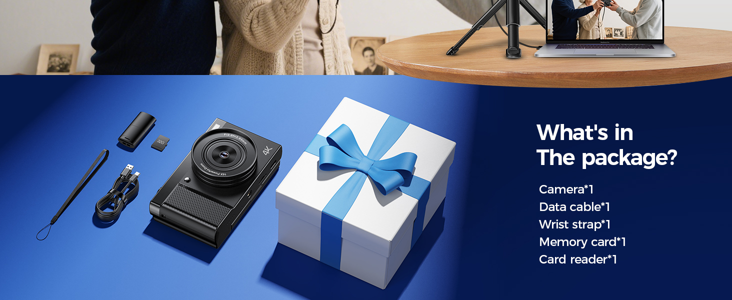 【Complete Accessories & Services】The camera comes with a 1500mAh rechargeable battery that can be used continuously for 4-5 hours.Accessories include a Type-C data cable,32GB memory card,card reader,and lanyard.This allows you to start shooting immediately and store a large number of photos and videos to capture precious moments.Enjoy a smooth and pleasant photography and videography experience!