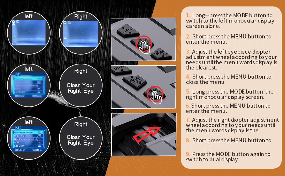 - [Bino]cular Design]: Greatly reducing the fatigue feeling of long-time observation; Binocular design catering to different groups of people; Ergonomic design, raised buttons can be quickly recognized by touch even in total darkness.