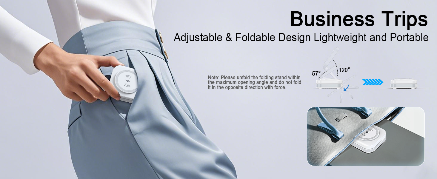 - Portable but Powerful & Always Travel-Ready: This foldable ultra-compact 2+ 3 in 1 Magnetic Wireless Charging Station fits easily in your palm or pocket, Ideal for travel, business, home, or office. Super strong magnetic attraction 16pcs of N52 array magnets firmly adsorb the phone for secure device attachment and uninterrupted charging