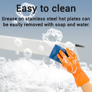 Grease on stainless steel hot plates can be easily removed with soap and water,