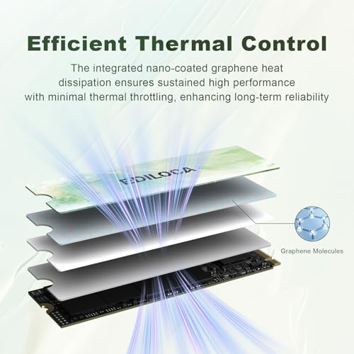 【Excellent Performance】EDILOCA EN680E NVMe 512GB SSD leverages NVMe 1.4 technology and dynamic SLC caching to deliver accelerated boot times and rapid data transfers. The integrated nano-coated graphene heat dissipation ensures sustained high performance with minimal thermal throttling, enhancing long-term reliability.