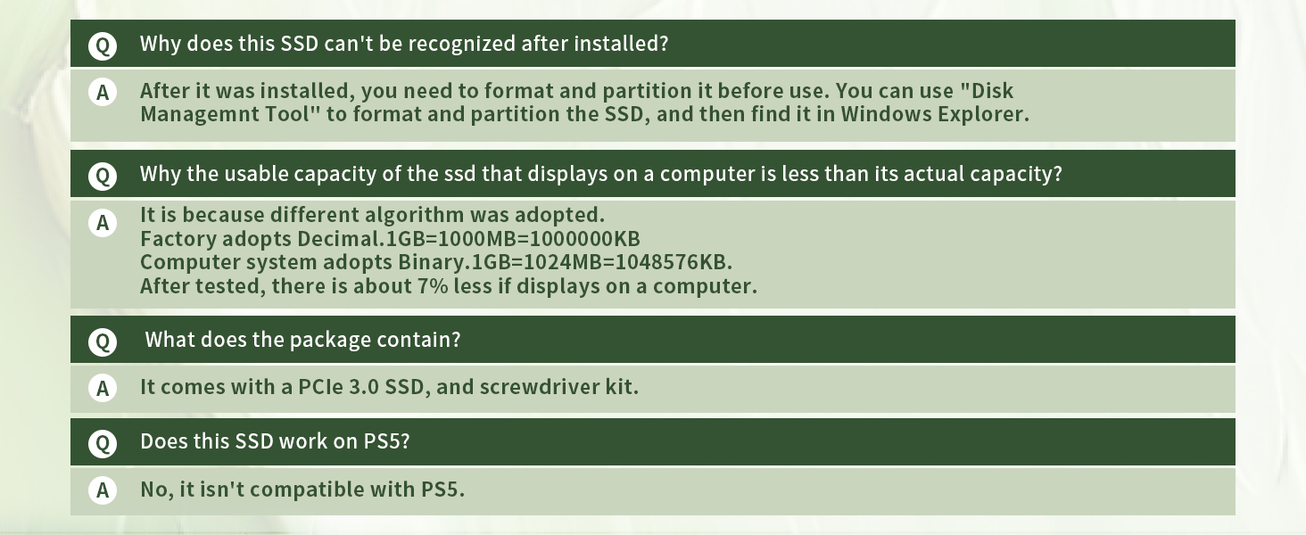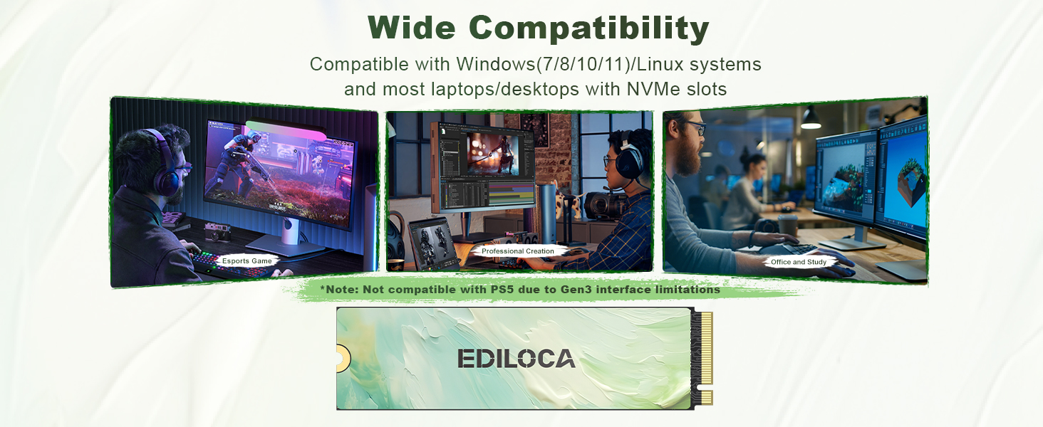 【Wide Compatibility】Featuring a M.2 2280 (PCIe Gen3x4) form factor, this m.2 ssd 512GB is compatible with Windows(7/8/10/11)/Linux systems and most laptops/desktops with NVMe slots. *Note: Not compatible with PS5 due to Gen3 interface limitations.