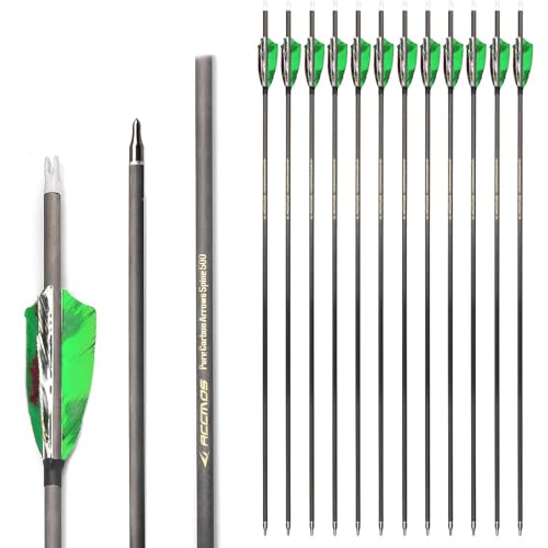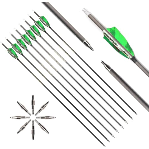 6/12pc Custom Length Feathered Carbon Arrows 300/350/400/500/600/700/800 Spine Removable Tips 3″ Turkey Feather Targeting Hunting Arrow for Traditional Bow Long-Bow Recurve Bow Compound Bow Archery A3