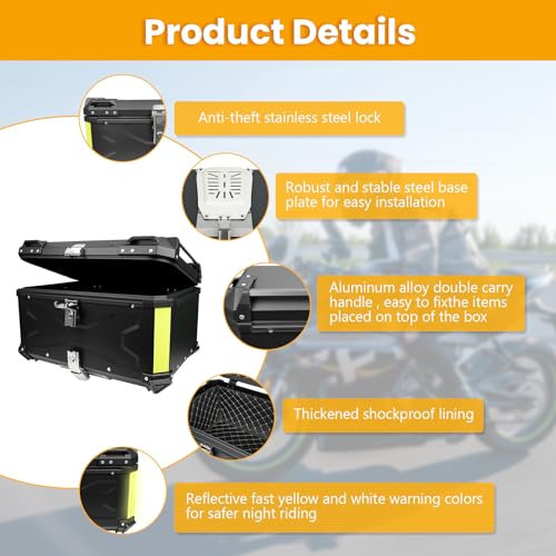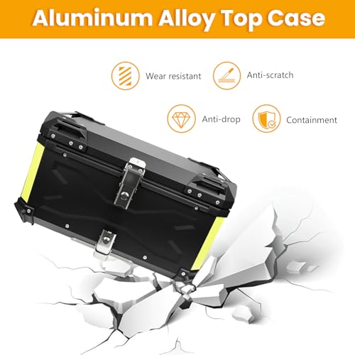 65L Motorcycle Top Case, Aluminum Luggage Box with Lock & 4