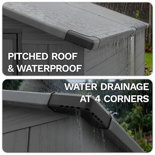- Built to Withstand the British Weather:Crafted from heavy-duty resin panels, this shed offers exceptional resistance to rain, wind, and UV rays. It provides reliable, long-term protection for your belongings against the elements, season after season.