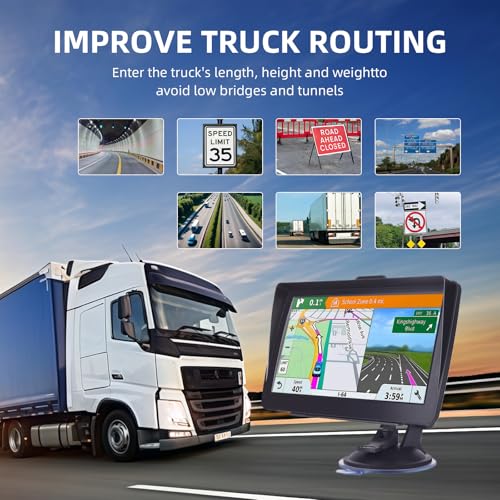 - 【Simple Setup and Easy to Use】Plug into your vehicle’s power outlet and the satnav starts automatically. Use the intuitive menu to select your route, choose car or truck mode, and begin your journey. Comes with a sturdy suction mount, USB cable, and car charger for instant installation.
