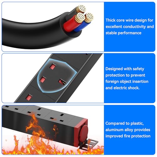 - 【Durable Aluminium Housing & Flexible 1.8m Power Cable】Constructed with a high-quality aluminium casing, this extension lead is especially durable, impact-resistant, and heat-resistant—perfect for use in offices, workshops, or home workspaces. The 1.8-meter long power cable offers ample flexibility for convenient placement anywhere in the room—under desks, on walls, or shelves—ensuring a stable and safe power supply without limitations.