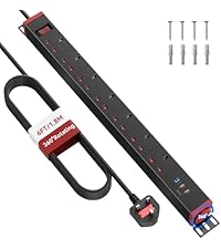 - 【360° Rotatable and Flexible Mountable extension lead】This 8-way extension lead features pre-drilled mounting holes and includes all necessary hardware for quick and secure installation on walls or vertical racks. The 360° rotation allows flexible positioning of power sockets, making it easy to connect various plugs and adapters in a space-saving way. Ideal for home cinemas, offices, workshops, garages, and any environment with high power demands.
