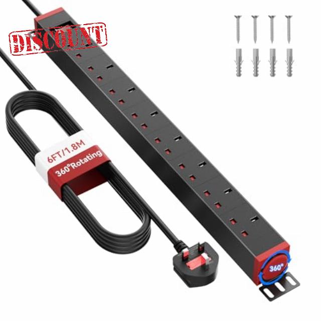 - 【360° Rotatable and Flexible Mountable extension lead】This 8-way extension lead features pre-drilled mounting holes and includes all necessary hardware for quick and secure installation on walls or vertical racks. The 360° rotation allows flexible positioning of power sockets, making it easy to connect various plugs and adapters in a space-saving way. Ideal for home cinemas, offices, workshops, garages, and any environment with high power demands.