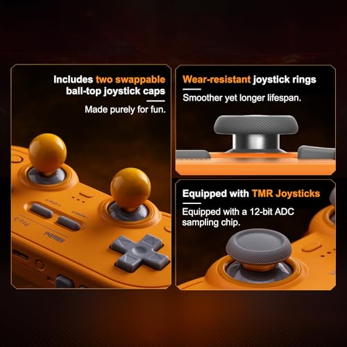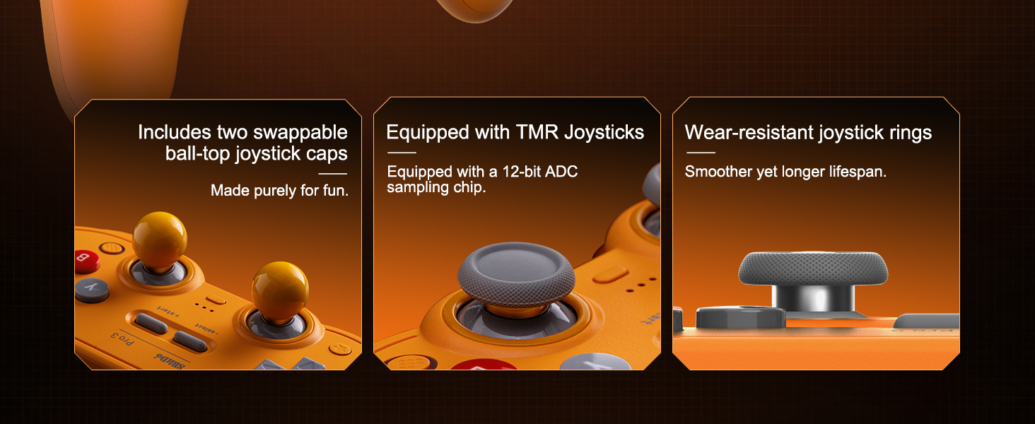 - TMR Joysticks & Trigger Mode Switch – Equipped with high-precision TMR joysticks with 12-bit ADC sampling chip. Easily switch between linear Hall Effect triggers and non-linear tactile triggers for different games.