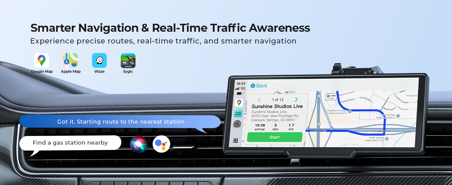 - Seamless Wireless Apple CarPlay, Android Auto & Screen Mirroring: Enjoy hands-free access to music, calls, and messages with voice control—stay focused on the road. Get real-time navigation and traffic updates via Apple Maps, Google Maps, or Waze for a smarter, safer drive. Enjoy instant screen mirroring for on-the-go entertainment anytime, anywhere