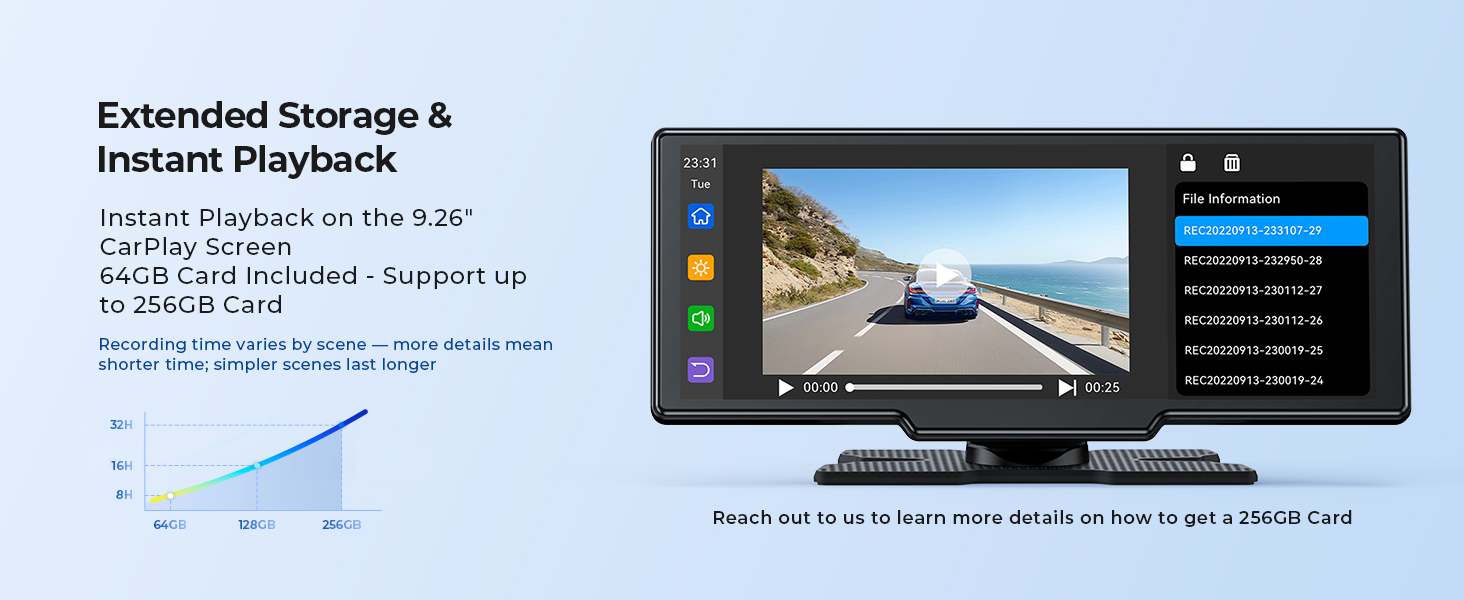 9.26″ Wireless Portable Car Play Screen with 4K Front & HD