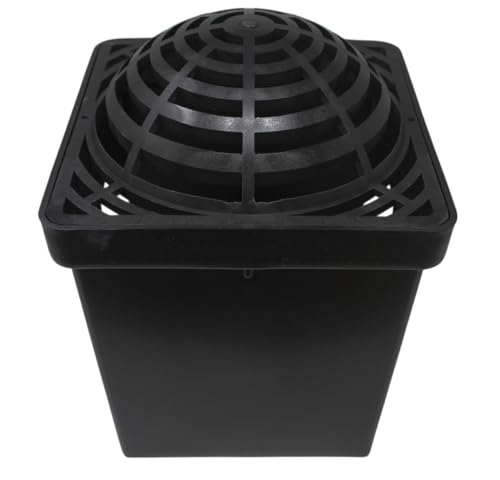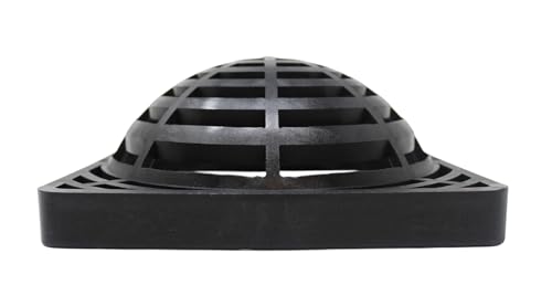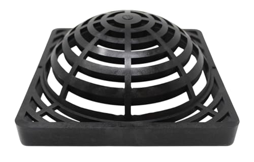 This 9″ Outdoor Square Dome Drain Grate Cover is heavy duty, injection molded plastic for strength. Protects your drainage system by preventing leaves and debris from entering and clogging the pipeline, while letting surface water flow through. Ideal for light storm water flow from small lawns, landscaped areas, walkways & patios. Connects to 9 inch drain catch basin.
