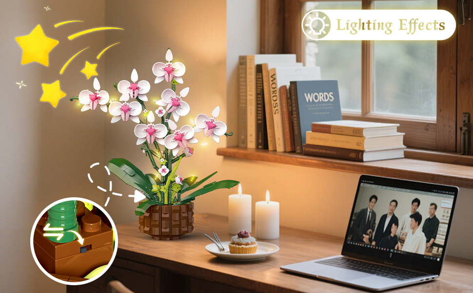 ROMANTIC ATMOSPHERE: The specially designed fairy lamp cleverly integrates into the flowerpot, casting a gentle halo over the orchids when lit at night, serving as both a decorative ornament and a night light. The light and shadow circulation room creates a warm and romantic atmosphere for the bedroom, living room, or study.
