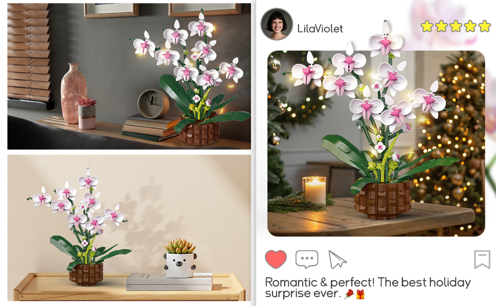 HEARTFELT GIFT: Orchid blocks are vividly assembled to capture the beauty of nature. Comes with an exclusive greeting card for personal message, suitable for precious moments such as birthdays and anniversaries, to create a unique heart worth cherishing forever.