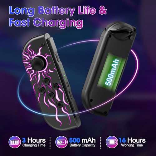 - 【Large Capacity Battery】Switch Controller has excellent battery life, built-in 600mah rechargeable battery with a 3 hour charge time and up to 18 hours of use when fully charged, You can play your favorite games on this Gamepad for hours on end without having to worry about the battery life giving out.