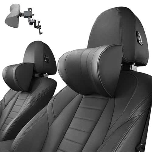 Adjustable U-Shaped Car Headrest Pillow, Ergonomic Cars Neck Support Pillows Both Leather for Driving, Headrest Safe for Vehicle For Travel (Black)