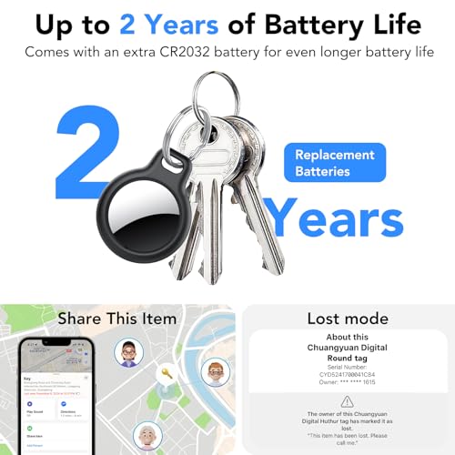 【Replaceable Battery and IP68 Water/Dust Resistance】This tracker tags is powered by a CR2032 coin battery (includes 1 replacement battery), delivering up to 2 years of battery life. Your phone will alert you when the battery is low. The removable design makes battery replacement easy while preventing children from opening the device. With IP68 water and dust resistance, it withstands rain, splashes, and brief submersion (up to 3 feet/1 meter), making this locator ideal for travel and outdoor use.