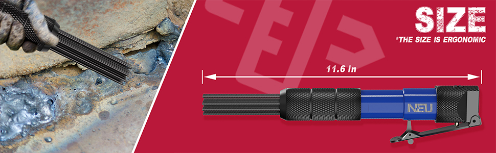 【Durability】Straight level compressed air needle descaler is made of high-quality aluminium alloy, wear-resistant and durable. Ergonomic design, the handle is more comfortable, shockproof and efficient.