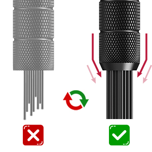 The air needle scaler has a necking design at the front end, which makes the needle more concentrated,and has a more obvious rust removal effect.