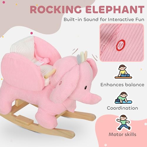 AIYAPLAY Kids Rocking Horse, Baby Ride on Elephant Rocker with Safety Belt and Sound Effects, Rocking Animal for Toddlers 18 to 36 Months, Pink