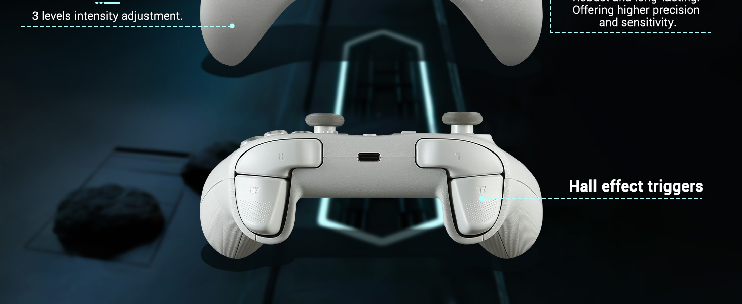 - Advanced Hall Joysticks & Triggers – Equipped with precision hall effect joysticks for Long-lasting Durability control, plus 256-level Hall Effect triggers for lifelike analog input.
