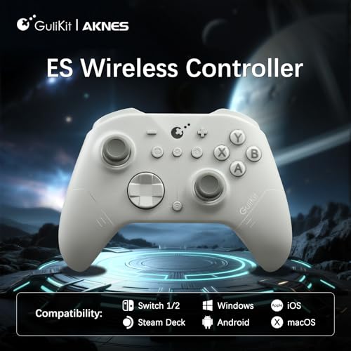 AKNES GuliKit ES Wireless PC Gaming Controller for Switch 1/2, Windows/Android/Mac/Steam Deck with 3.25ms Low Latency, Hall Effect Joysticks, Switch1/2 Wake-Up, Tactile Switch D-pad (Gray)