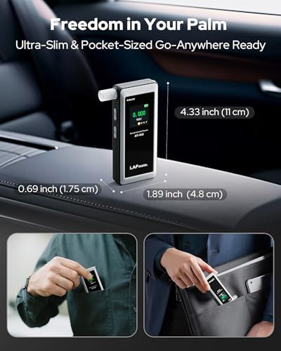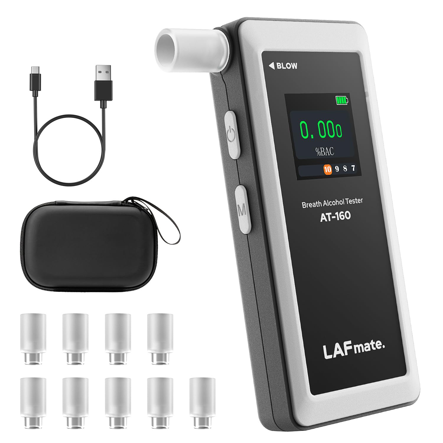Alcohol Breathalyser, LAFMATE Precision BAC Tester with Adjustable Alarm Limit, LCD Digital Display, 10-Test Data Storage, 10 Mouthpieces, Portable Home & Travel Alcohol Detecto