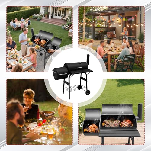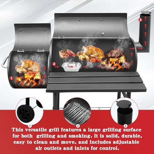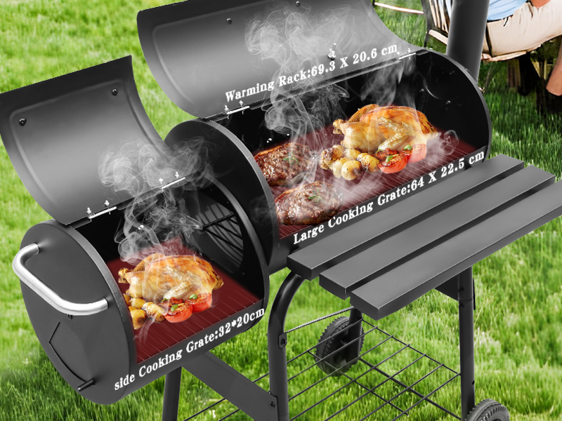 - Dual-Chamber Design: Offset smoker chamber allows you to infuse your food with rich, smoky flavor while grilling on the main chamber.