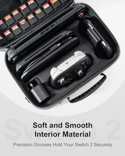 Full Protection: This hard carry case for Switch 2 features an hard EVA shell to resist drops and pressure. The interior is lined with a soft polyester lining providing a snug fit that resists loosening and wiggling, provides secure protection for Nintendo Switch 2 and other accessories
