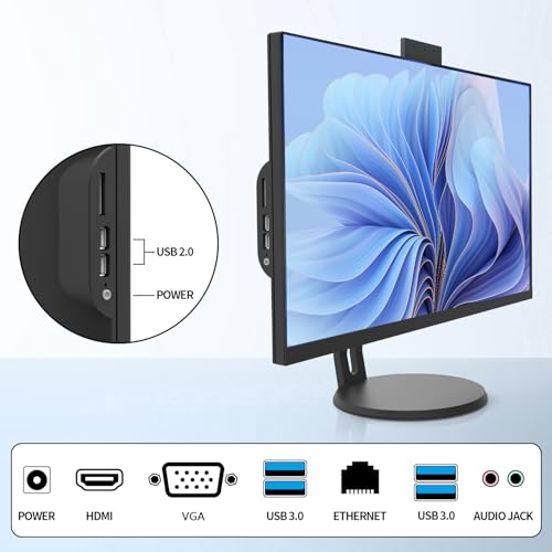 - 【Rich Ports】This all-in-one computer includes various ports, including 2*USB 2.0,4*USB 3.0 , 1 * HDMI port, 1 * VGA port, 1 * Gigabit Ethernet port, 1 * audio input port, 1 * 1 audio output port, power input port, and can connect to 2 monitors simultaneously.
