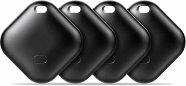 Android tracker tags, Bluetooth Smart Tag compatible with Google ‘Find Hub’ App (Android Only), Suitable for Luggage, Suitcases, Keys, Backpacks and more, Black – 4 packs