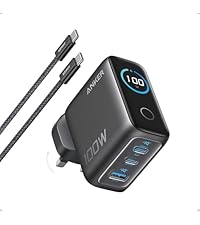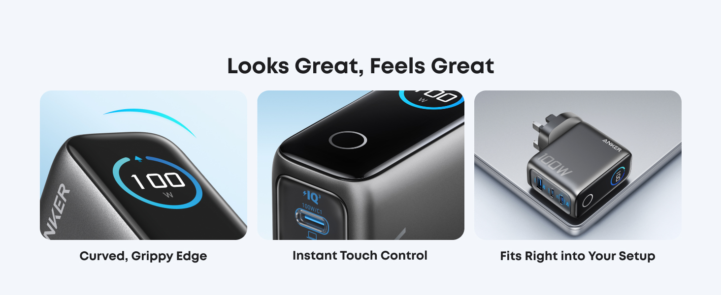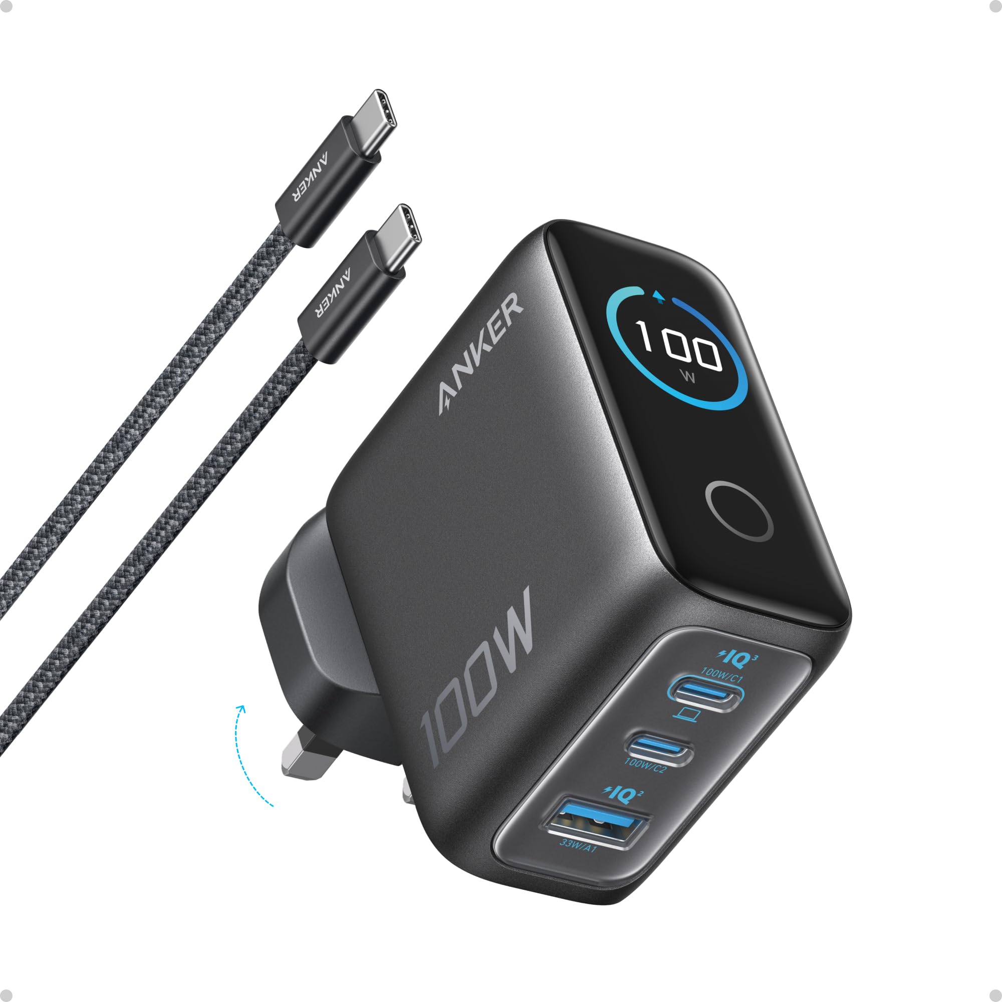 Anker Charger, 100W Max USB C Charger, 3-Port GaN and Ultra-Compact Wall Adapter, Smart Display and Touch Control, For MacBook, iPad, iPhone 17/16/15 Series, and More