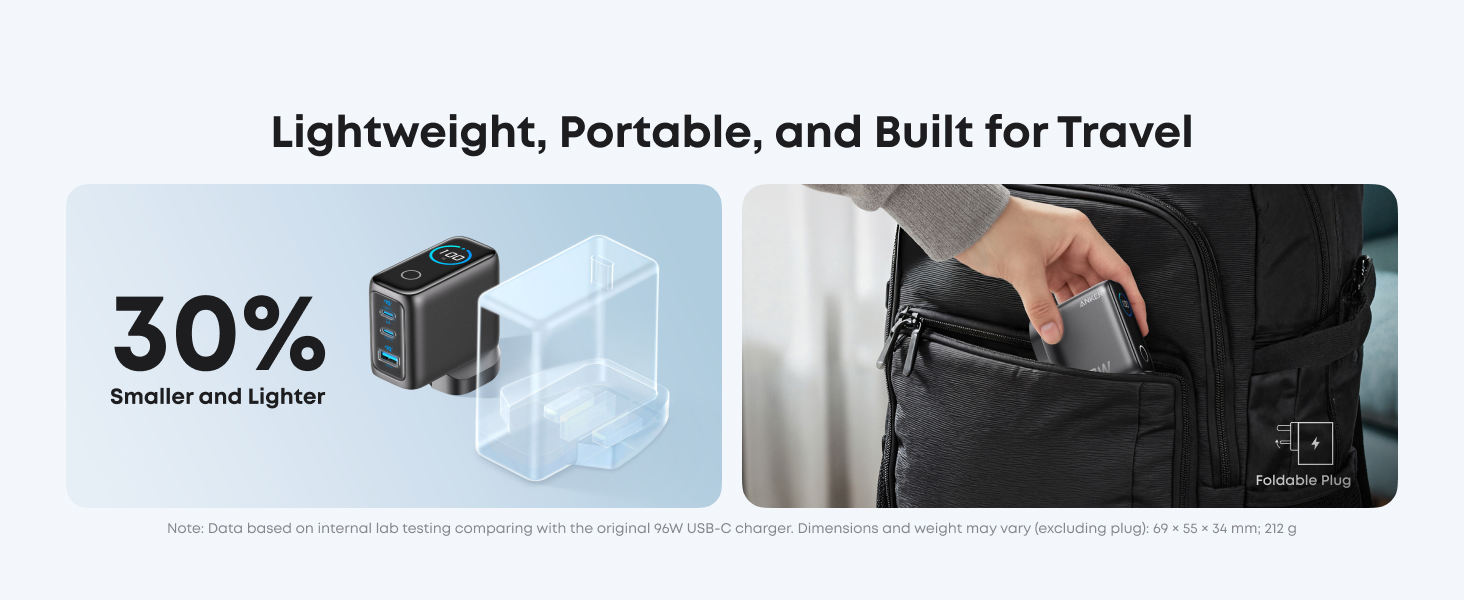 - Travel-Sized for Daily Carry: With a foldable plug and a 30% smaller frame, it measures just 2.72 × 2.17 × 1.34", making it easy to slip into a backpack, shoulder bag, or even a coat pocket.