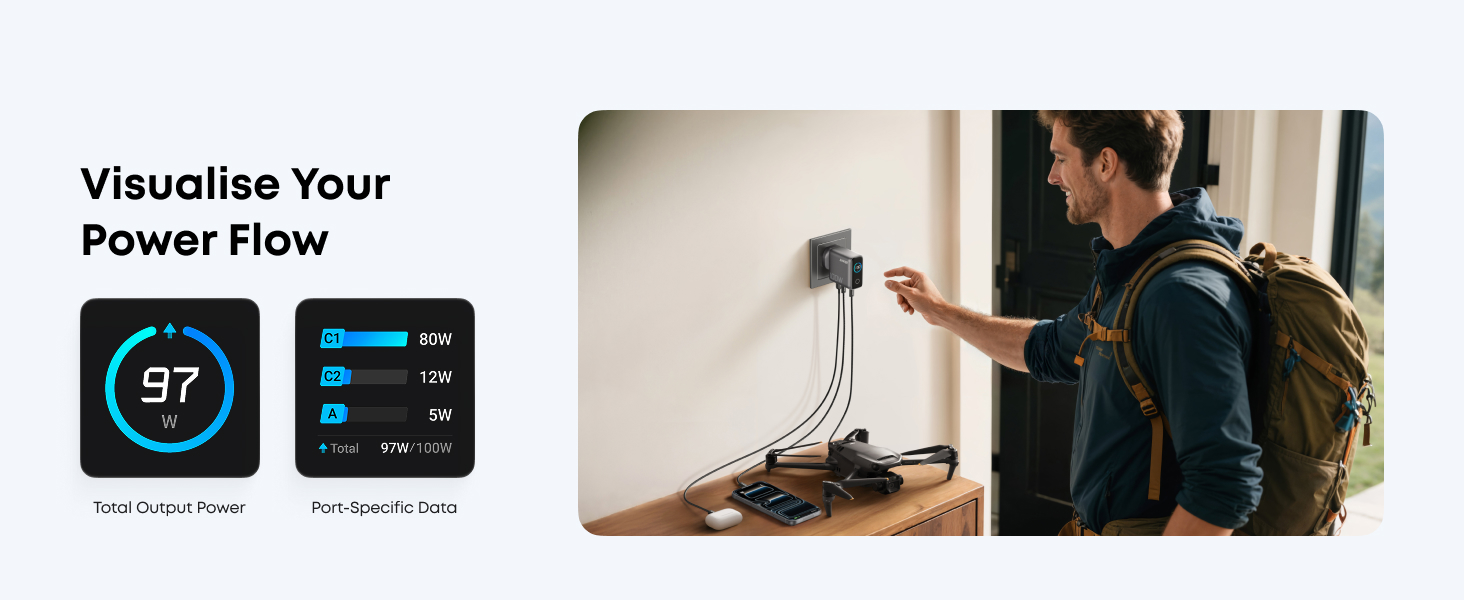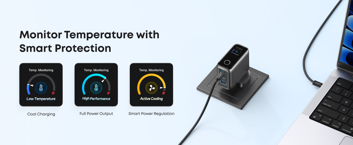 - See Charging in Motion: The high-definition smart display shows real-time details on charging status, temperature, and port performance, giving you instant visibility and control.